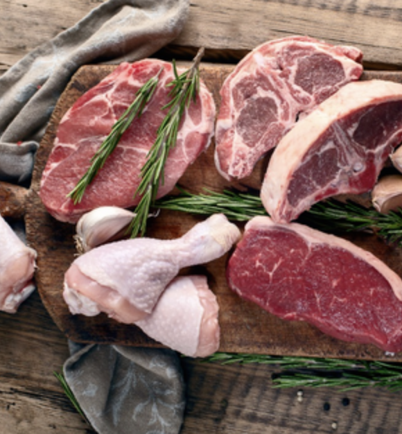 Receive 6 lbs of assorted cuts, including 2 lbs of poultry, 2 lbs of pork, and 2 lbs of beef, every month. This is a Farmer's Choice assortment.